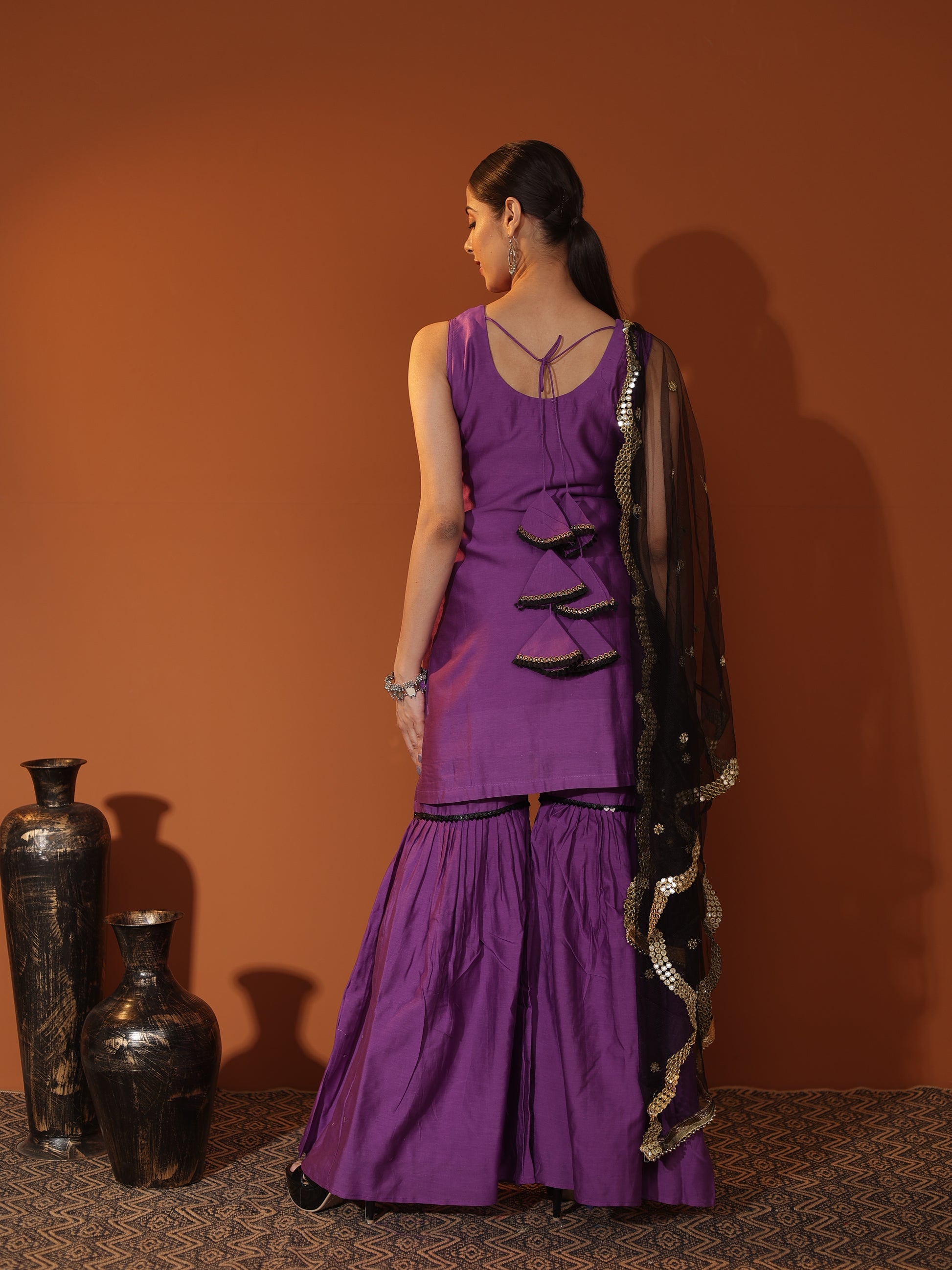 Chanderi Silk Gharara Set in Purple with Dupatta – Elegant Festive Ensemble